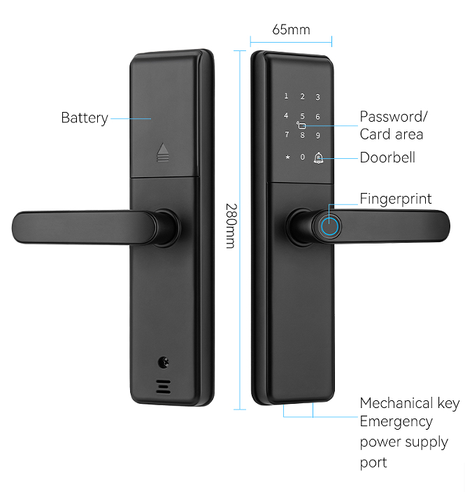 | ปลดล็อกทาง: | แอพ Tuya wifi/แอพ TTlock และรหัสผ่าน & ลายนิ้วมือ & การ์ด & คีย์ | แอป: | Tuya สมาร์ท /TT ล็อค |