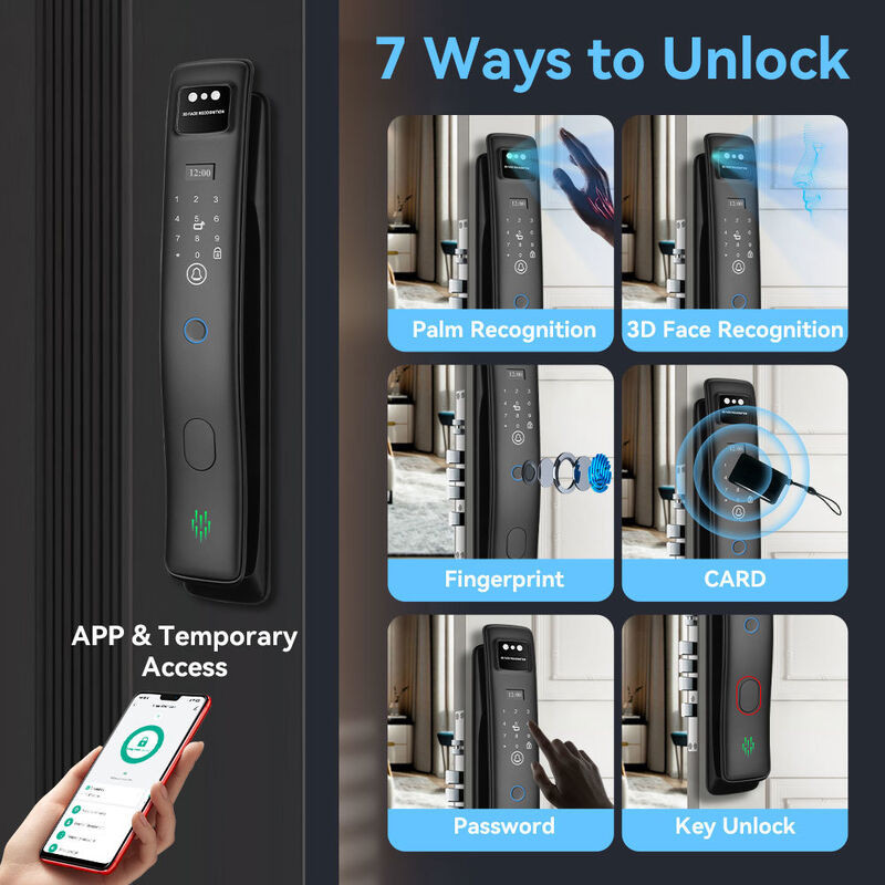 | ล็อคระดับกระบอกสูบ: | กระบอกล็อคนิรภัยคลาส C | เปิดทาง: | 3D FACE + PALM VEIN + Tuya การโทรผ่านวิดีโอที่ใช้งานอยู่ + รหัสผ่าน + การ์ด + คีย์ + แอป Tuya |